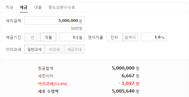 예치한다고 가정할 경우 1개월 뒤에