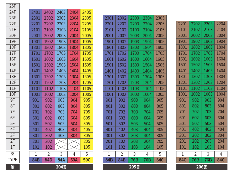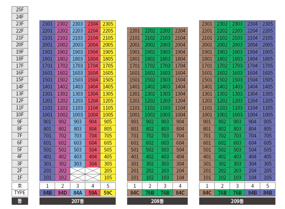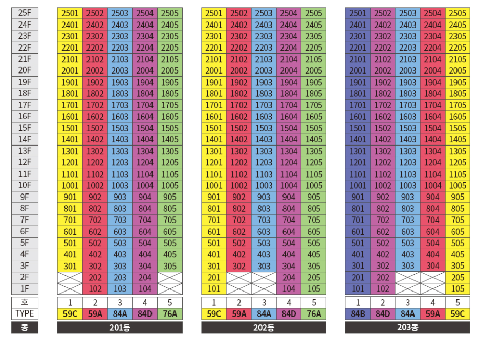 동 호수 배치도를 보면 딱히 눈에 뛸만한 타입은