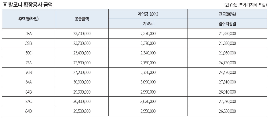 발코니 확장 : 2천만 원 ~ 3천만 원