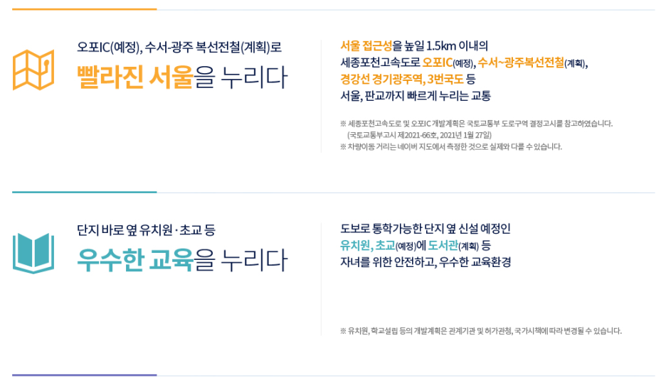 다만 유치원과 학교설립의 경우 예정이기때문에