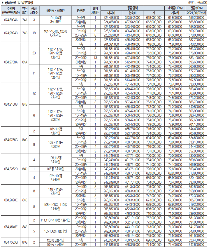 분양가격은 84m2 기준