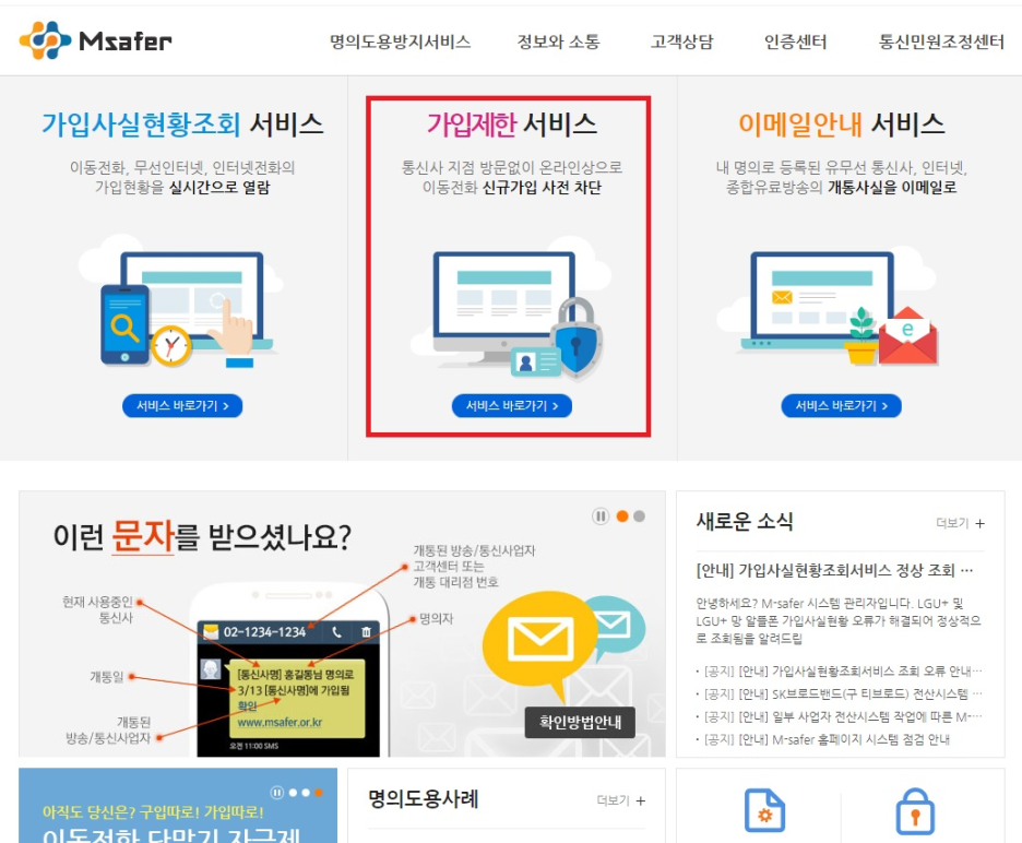 있는 명의도용방지 서비스를 알게 되었습니다.