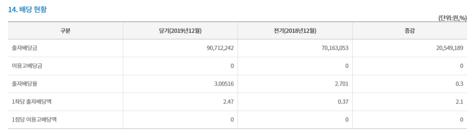 2019년도 정기 공시를 찾아보았습니다.