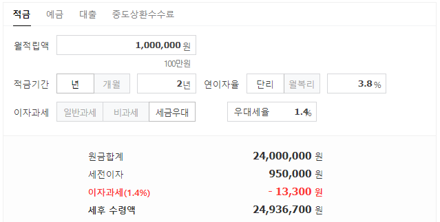 2년 동안 매월 100만 원씩 꼬박 납입하고