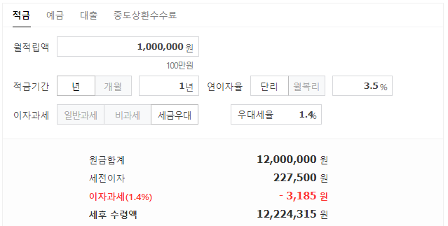 연 3.5% 금리에 세금 우대 (1.4%) 혜택