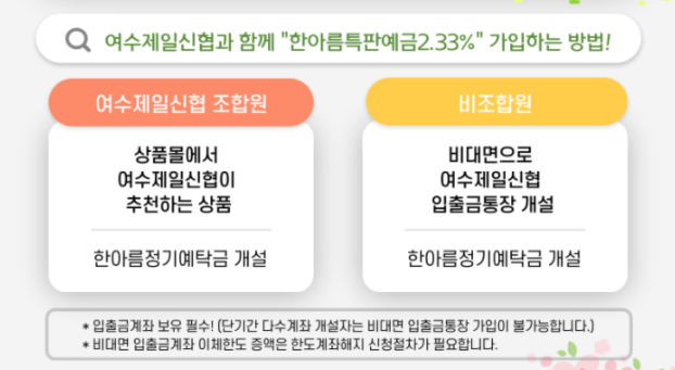 여수 제일신협 한아름특판예금 2.33% 가입