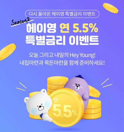 안녕하세요 ~ 저축 도우미 시나브로입니다. 신한 쏠 앱을 통해서 진행했었던 청약가입 시에 함께 가입할 수 있었던 헤이 영 5.5% 특판 적금 있었습니다. 1 금융권에서 전혀 볼 수 없던 5.