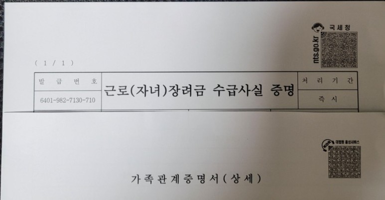 근로장려금수급 사실 증명서와