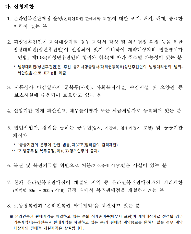 로또 판매점 신청 공통 사항