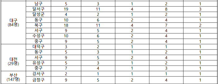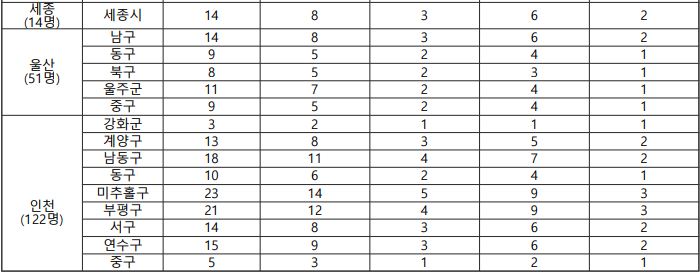 지역별 모집 인원