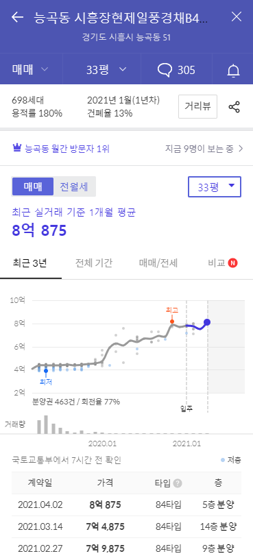 34평형의 경우 2021년 4월 2일에