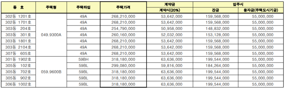 동일하게 잔여세대 분양가가