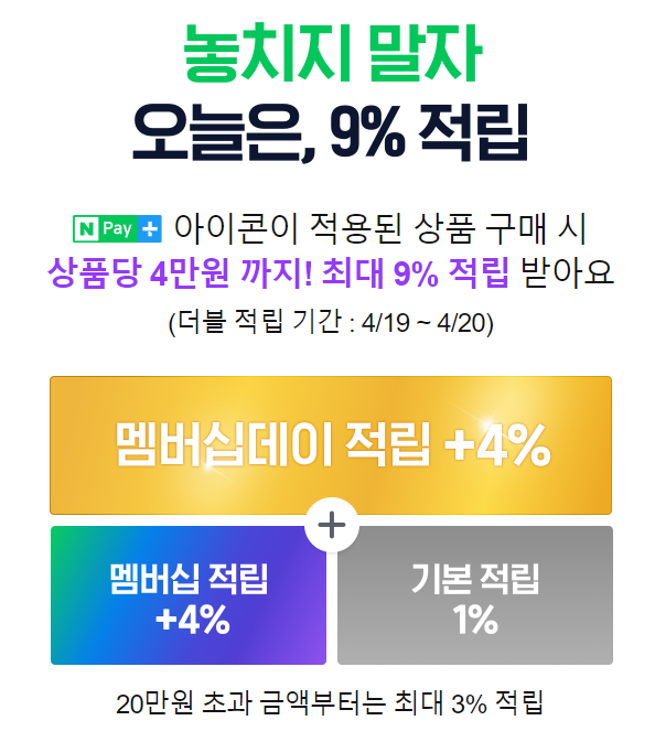 1. NPay+ 네이버 쇼핑 시 9% 적립