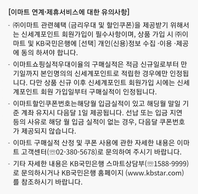 (주)이마트 및 KB국민은행에 선택 개인 정보