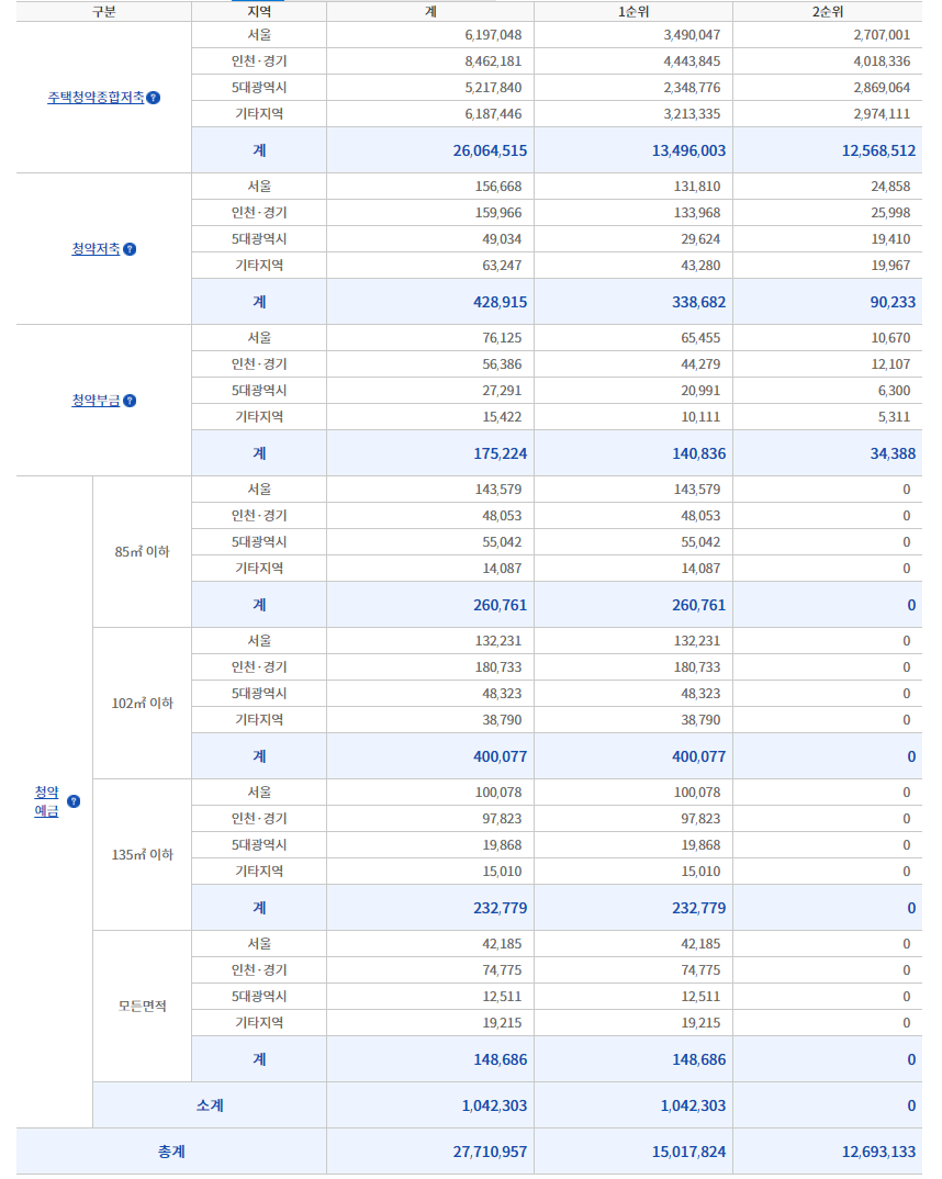 1순위 통장만해도 1천 5백만개가 넘게 있네요