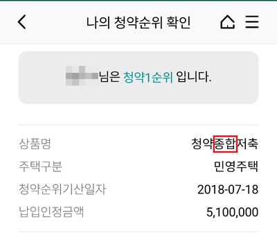 청약 종합 저축 -> 청년이 대형 청약 종합 저축으로