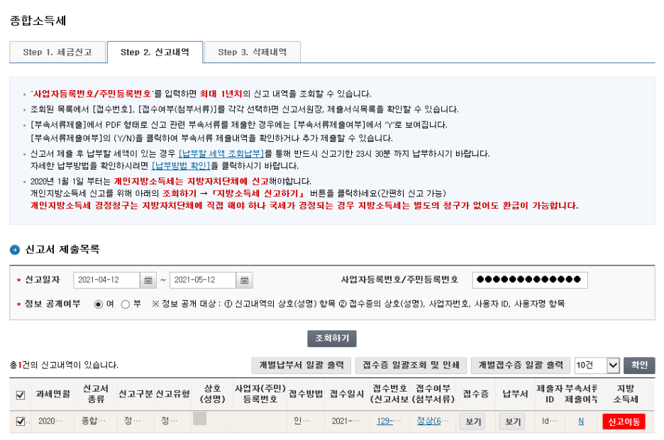 국세청 홈텍스 홈페이지를 통하여 종합소득세를