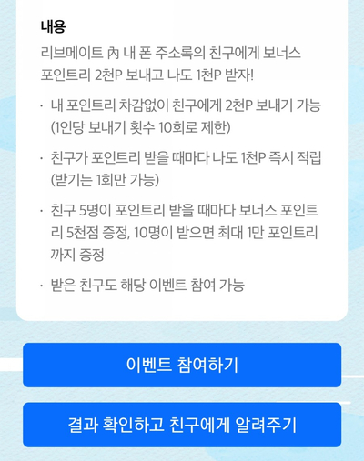 보내기 포인트리 한도는 친구 1명당