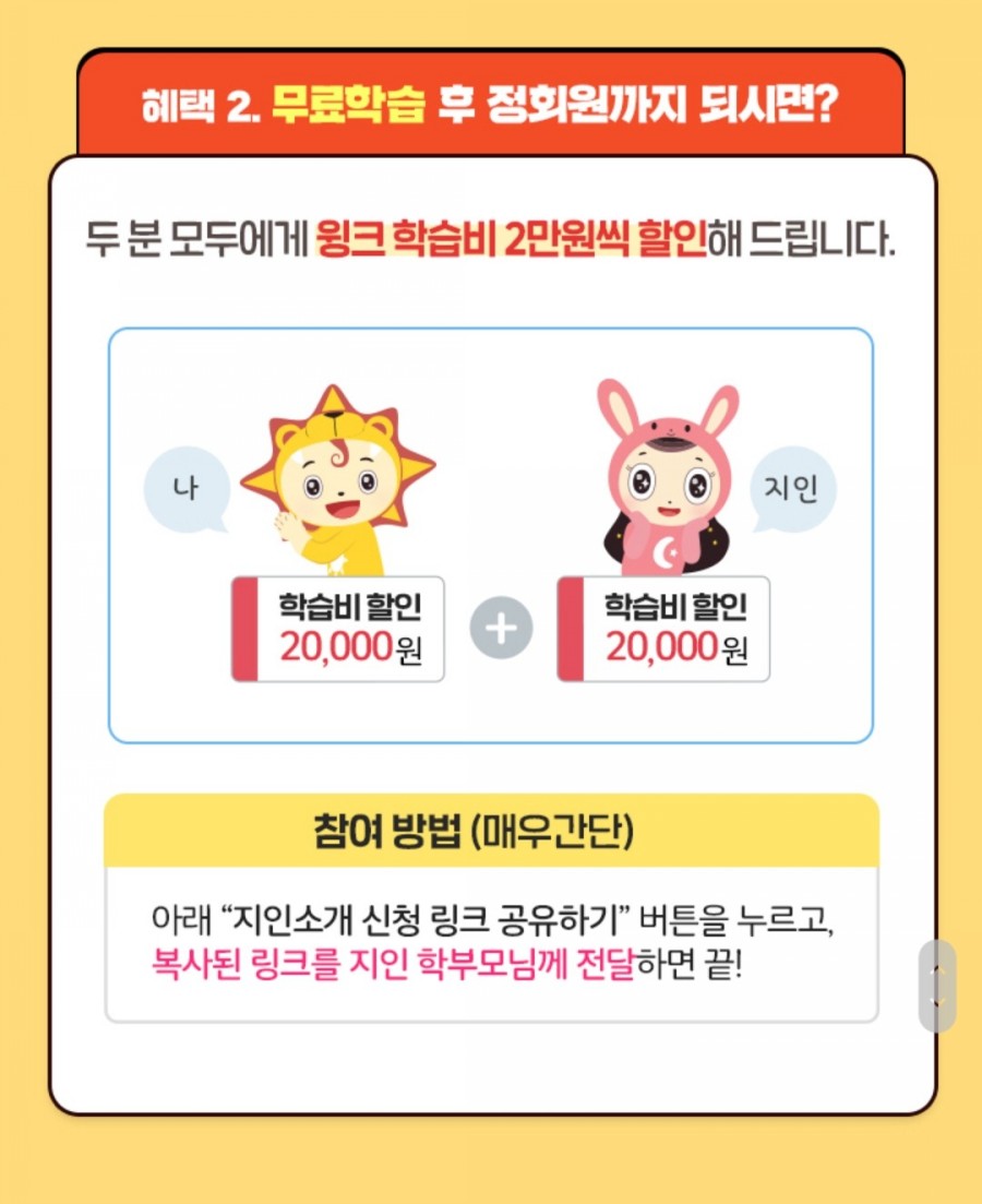 제 초대를 통해서 윙크무료학습을 신청하시면