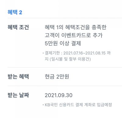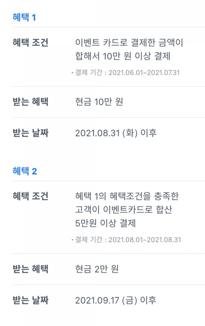 혜택 2의 경우 반드시 혜택 1 조건을 만족