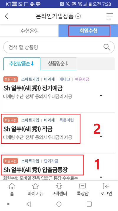 Sh수협 파트너뱅크 -> 금융상품 ->