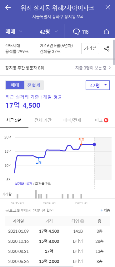 실거래가를 검색해보았습니다.
