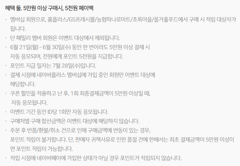 30만원, 100만원 이상 5만원 네이버