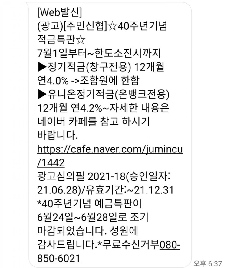 | 서울양천신협 특판정기적금 12개월 최대 6.5% 판매중 (0) | 2021.06.30 |