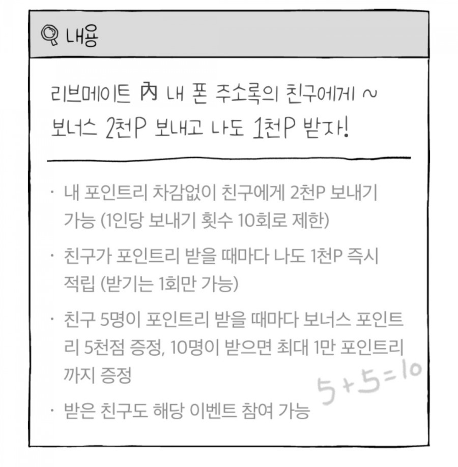 친구 5명이 포인트리를 받을 때마다