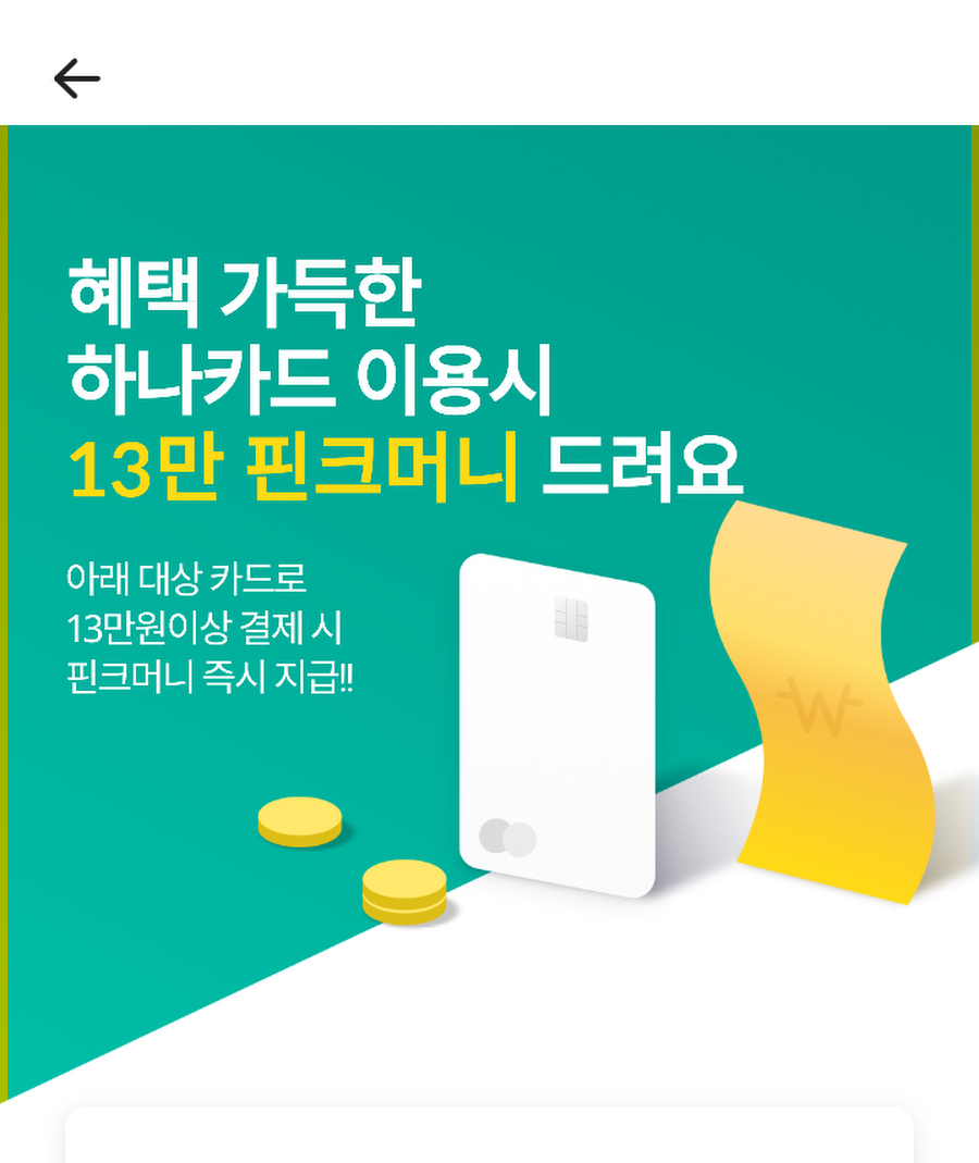 혜택 가득한 하나 카드 이용 시 13만 핀크머니를 드려요 ~