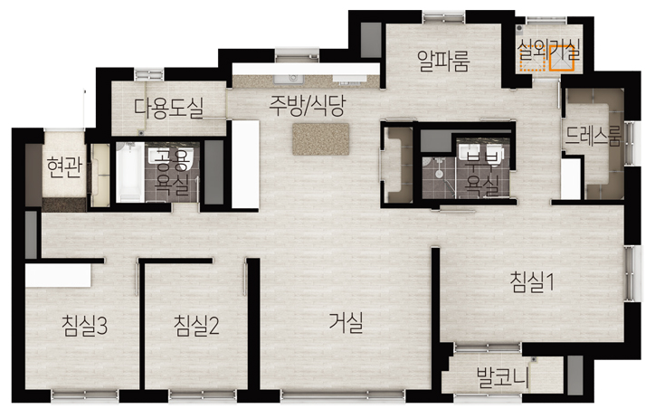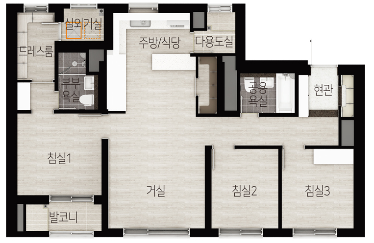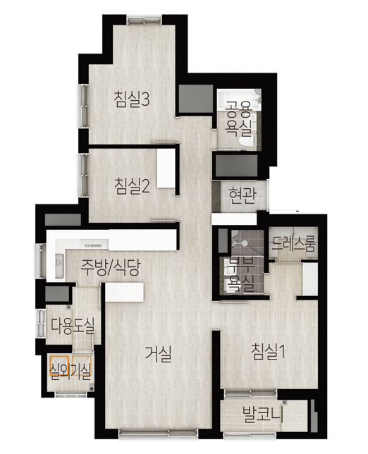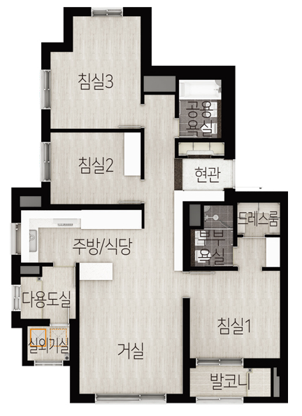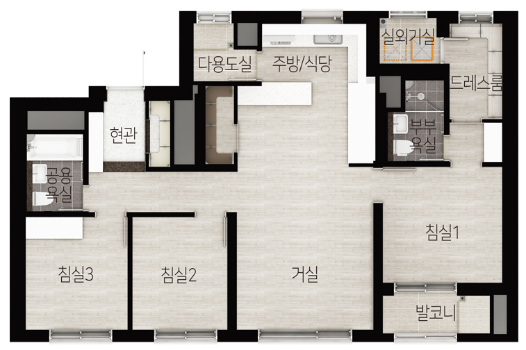59타입인데도 판상형 구조의 타입들은 드레스룸까지 갖추고 있습니다.