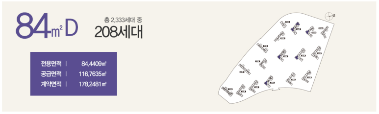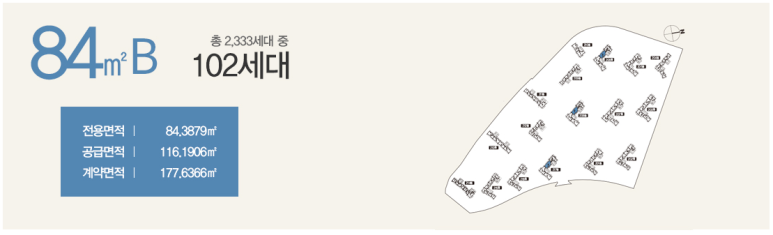 2,333세대 대단지이기때문에 평면이 상당히 많습니다.