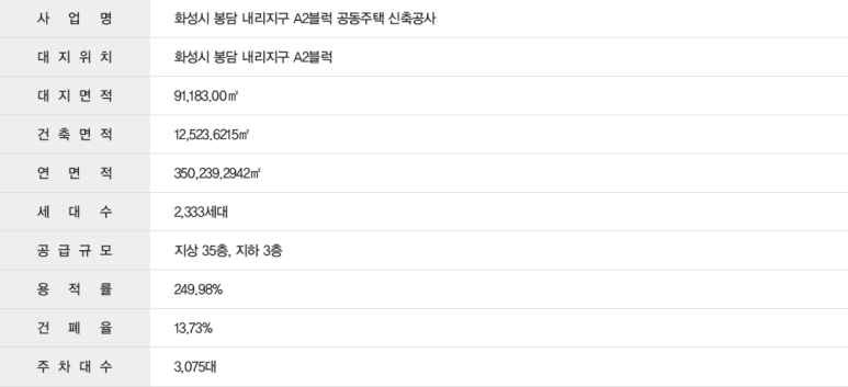 사업명 : 화성시 봉담 내리지구 A2블럭 공동주택 신축공사