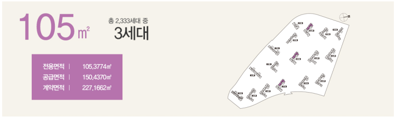 105타입은 단 3세대만 있는 펜트하우스 세대이기때문에 경쟁률이 상당히 높을 것 같습니다.
