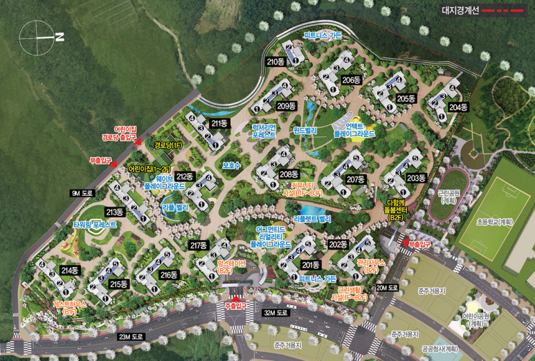 2,333세대 대단지 답게 단지안에 조경이나 커뮤니티시설이 매우 빼곡하게 배치되어 있습니다.