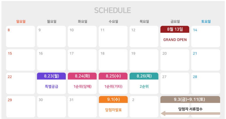 1순위 해당지역 청약일 : 8월 24일 (화)