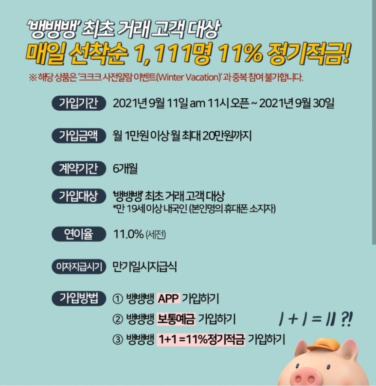 ※ 해당 이벤트는 뱅뱅뱅 11%정기적금과 참여가 불가능합니다.
