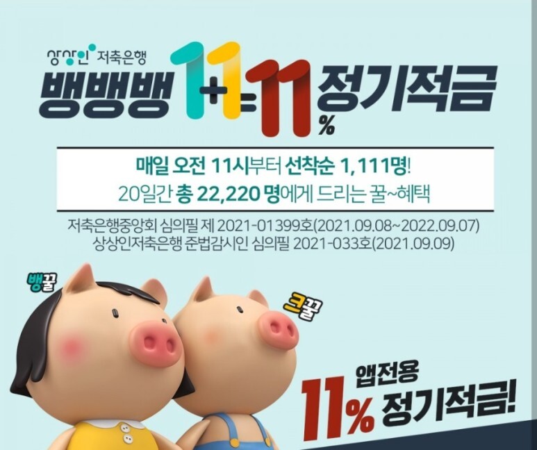 상상인저축은행에서 특판정기적금 11% 상품을 매일 1,111명에게 가입할 수 이벤트를 진행하고 있어서 소개합니다.