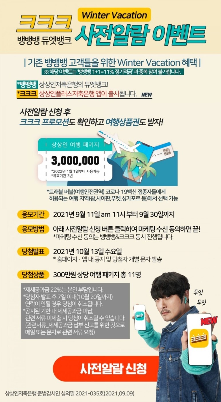 뱅뱅뱅 상상인저축은행 듀엣뱅크 크크크 상상인플러스저축은행 앱 출시 기념 이벤트입니다.