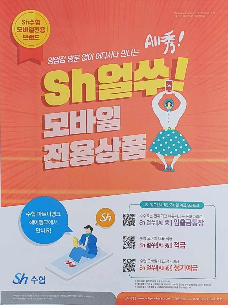 Sh수협의 Sh얼쑤입출금통장, Sh얼쑤적금, Sh얼쑤정기예금 상품들은 모두 수협 파트너 뱅크 앱을 통하여 비대면으로 가입할 수 있는 모바일 예금 시리즈입니다.