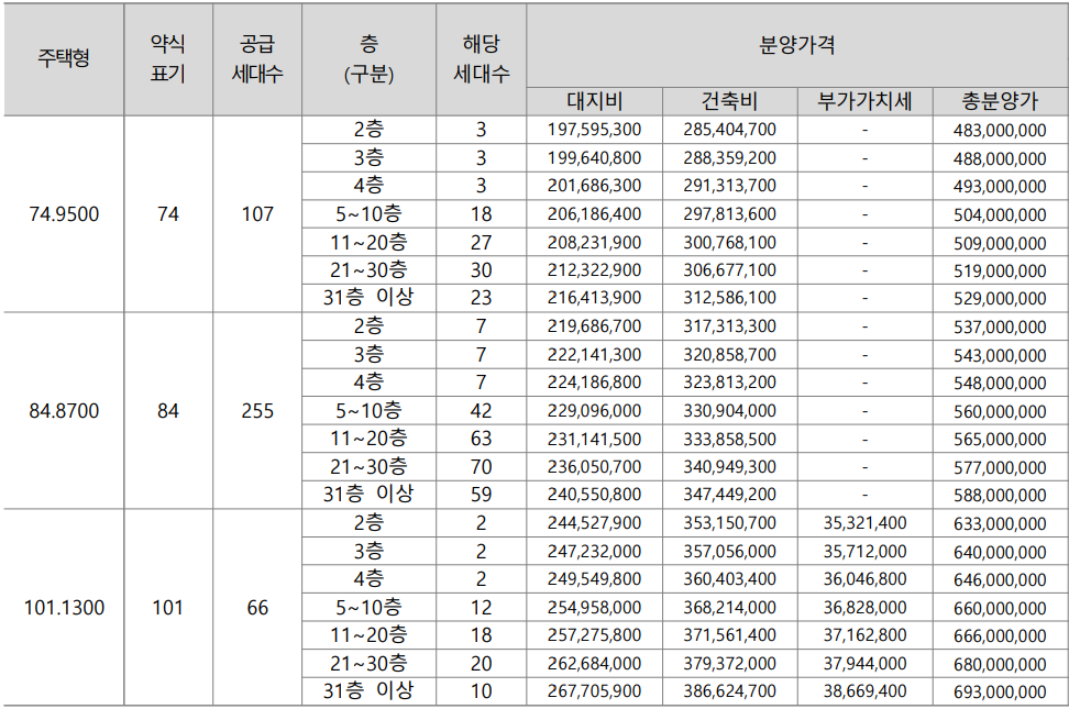 84타입과 101타입은 전형적인 4Bay 구조로 경쟁률이 꽤 높을 것 같습니다.
