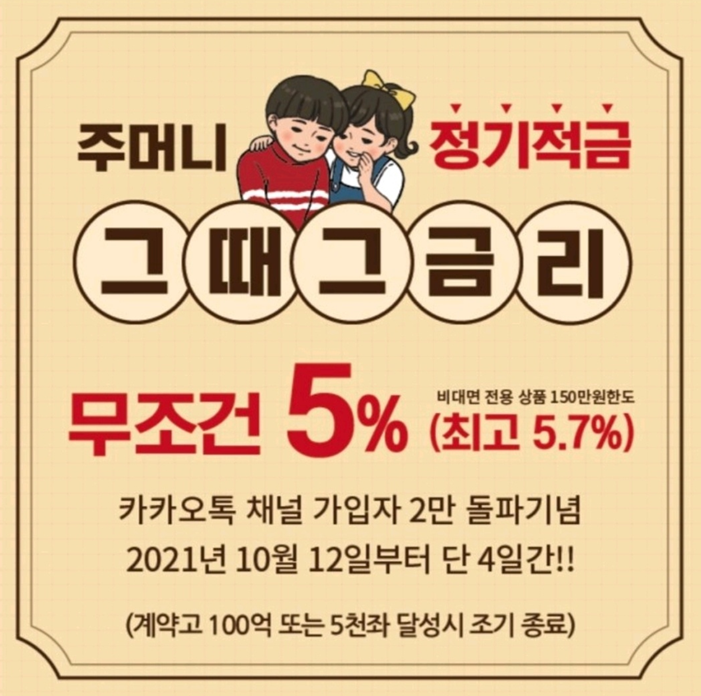 | 제민신협 특판정기적금 1년 ~ 3년 연 4.0% 온뱅크 비대면 가입 가능 (김장적금) (2) | 2021.10.02 |
