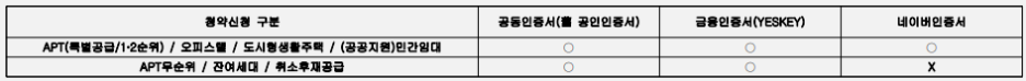 청약신청시 공동인증서(구 공인인증서), 금융인증서(YESKEY), 네이버인증서 세가지 인증서중에 하나로 로그인할 수 있으니 인증서가 없으신분들은 미리 발급하여 준비하시기 바랍니다.