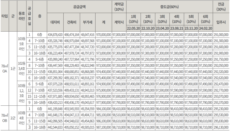 중도금 대출은 60%가 가능할 것으로 생각되며 계약금만 있다면 잔금때 전세를 주는 플랜도 세워볼 수 있기때문에 자신의 자금 계획에 따라서 잘 활용할 수 있을 것으로 생각됩니다.