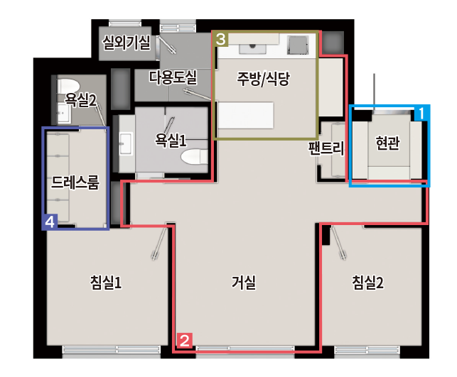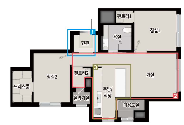 78OA 타입은 맞통풍이 가능한 평면 구조를 갖추고 있지만 78OB타입은 맞통풍이 안되어 환기에 조금은 불편할 것으로 생각됩니다.