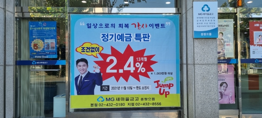 서울 중랑구를 업무구역으로 하는 중랑으뜸새마을금고에서 특판정기예금 13개월 2.4% ~ 12개월 2.5% 정기예금특판을 11월 10일부터 판매를 시작합니다.