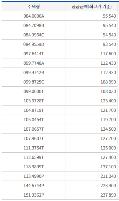 많은분들이 가장 궁금해하실 분양가부터 알려드립니다. 공급 금액 최고가 기준이기때문에 참고해서 봐주세요