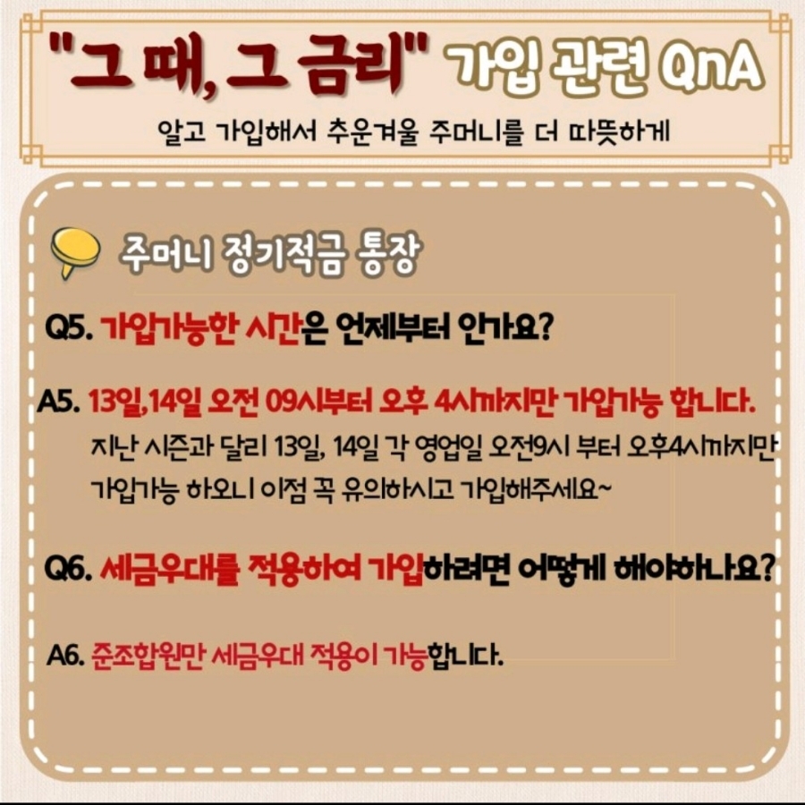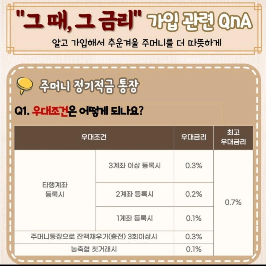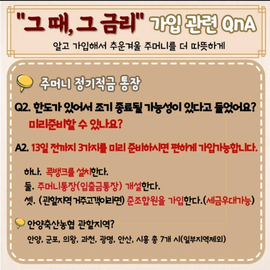 안양축산농협 주머니적금 그때 그 금리 가입 관련 QnA