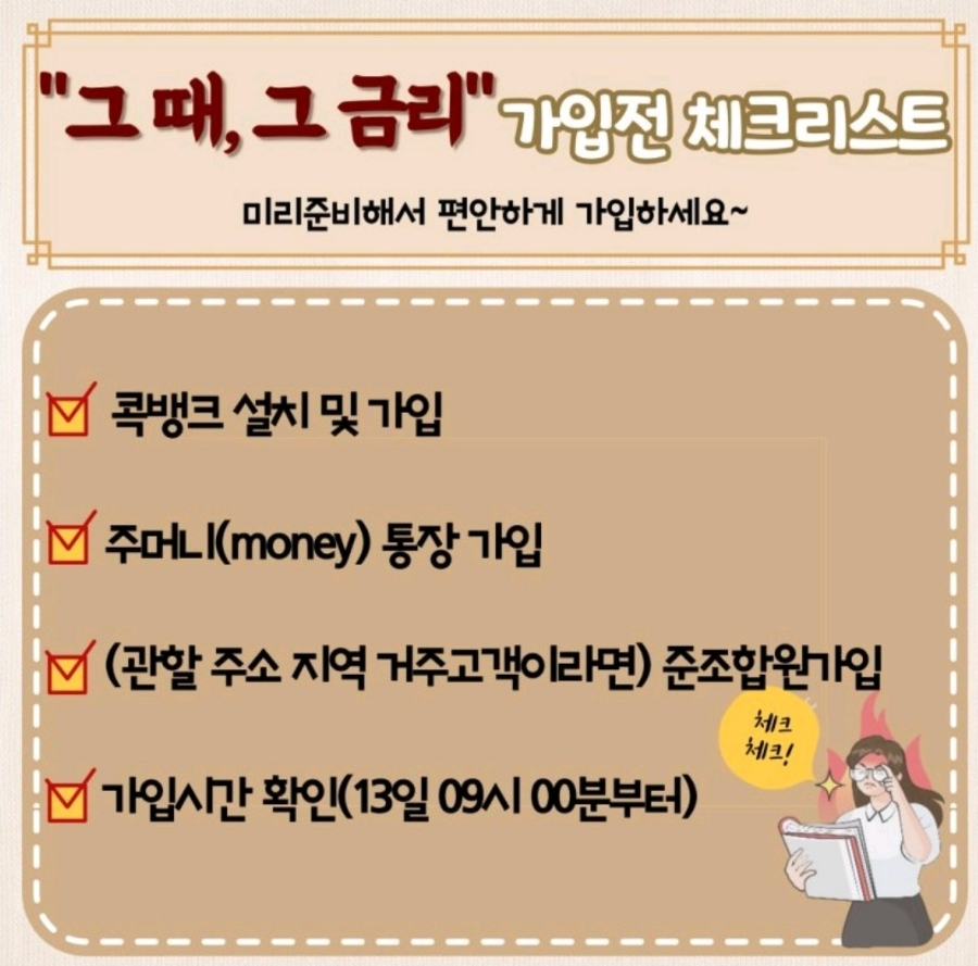 비대면으로 가입할 수 있는 고금리 적금을 기다렸던분들이라면 가입 전에 미리 준비사항들을 체크하시고 13일 오전 9시에 바로 가입하시길 바랍니다.
