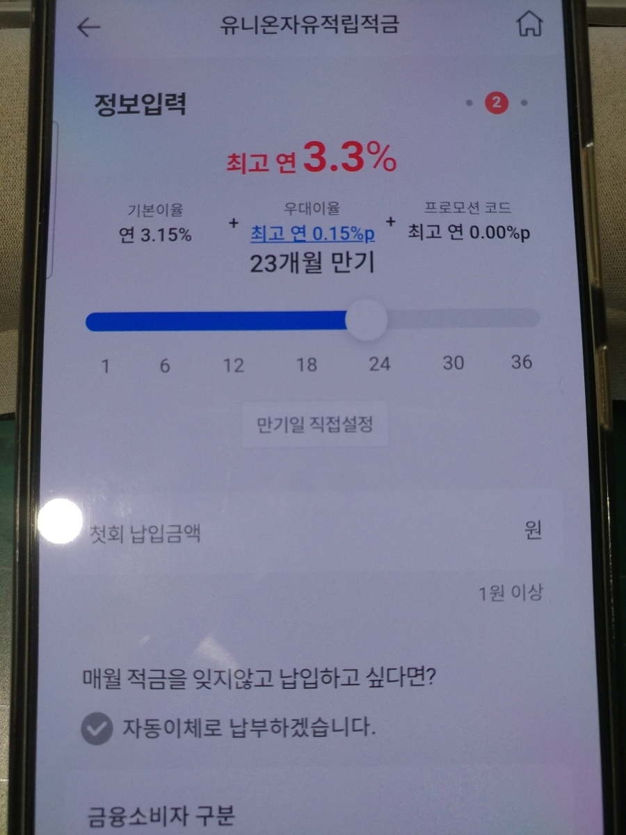 12개월 ~ 23개월까지의 적용 금리가 3.3% 입니다. 가입전에 3.3% 금리가 맞는지 꼭 확인하시고 가입해주세요